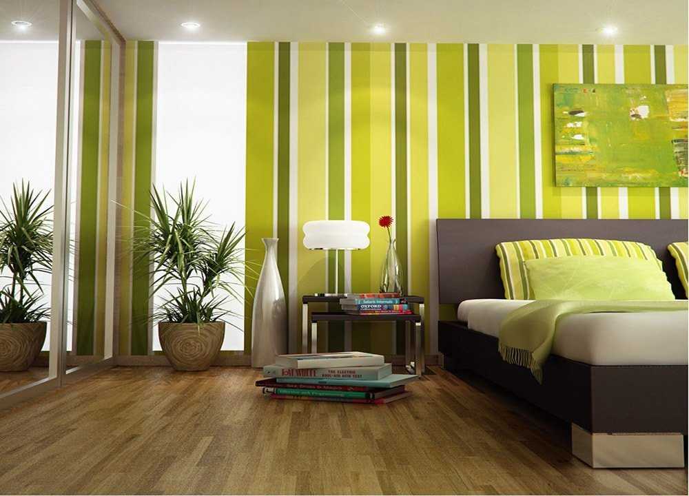 На фисташковых обоях с рисунком любой декор, композиция или картина будут малозаметны. Даже настенные часы могут «не вписаться» в интерьер на таких стенах.