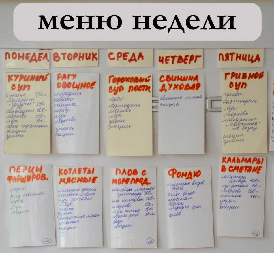пустой шаблон для составления меню на неделю с планом покупки/проверки ингредиентов