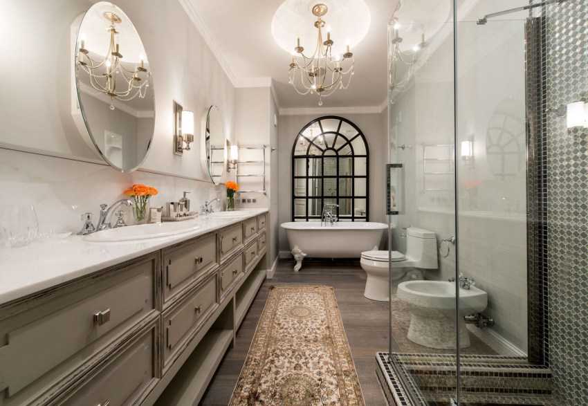 Для ванной комнаты стоит выбирать покрытия с максимальной стойкостью к влаге. В новостройках не рекомендуется использовать гипсокартон и ДСП. Помимо влагостойкости у материала должна быть высокая прочность. Это необходимо, чтобы выдерживать тяжёлое сантехническое оборудование.