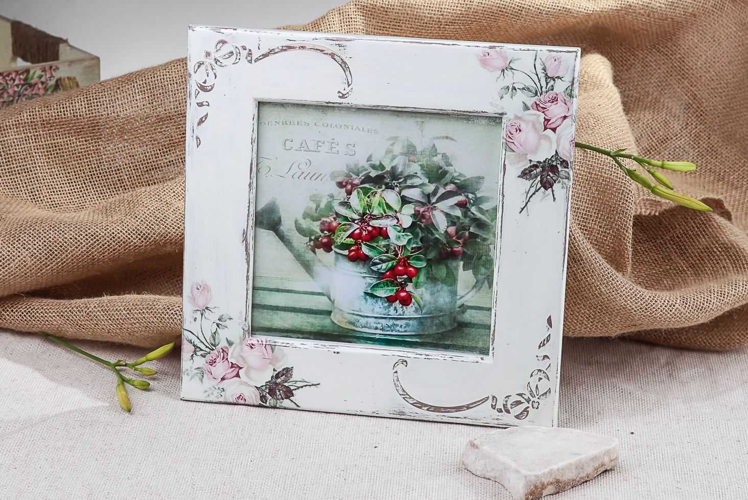 Рамку можно декорировать и в стиле декупаж, если используется древесина.