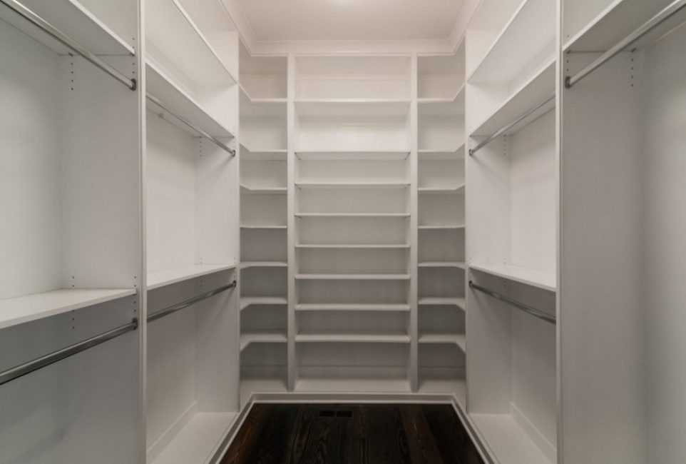Гардеробная будет не менее привлекательной, если сделается по другому плану. Для создания нового функционального пространства из кладовки необходимо сделать чертеж и обновить дизайн внутренних поверхностей стен. Стоит отремонтировать потолок. Можно сделать гардероб освещенным и провести электропроводку внутрь.