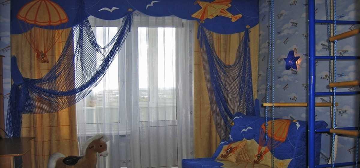 - Ширина штор в детской может быть как в гостиной без излишних складок, но можно сделать и более драпированные варианты т.е. ширина шторы от 1,5 до 2,5 длины карниза.
