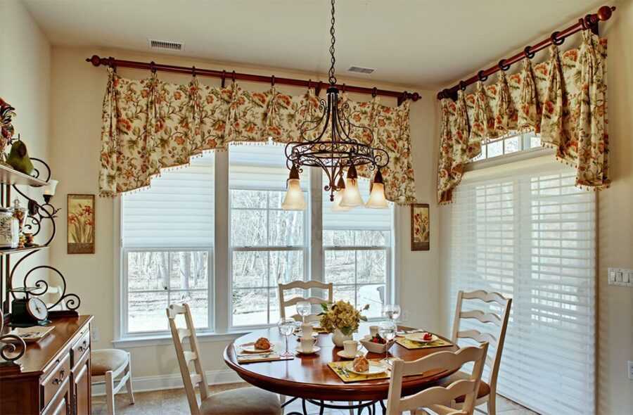 Еще интереснее творить, если помещение нестандартное, имеющее выступы или эркер. Необходимо учитывать количество окон и их расположение.