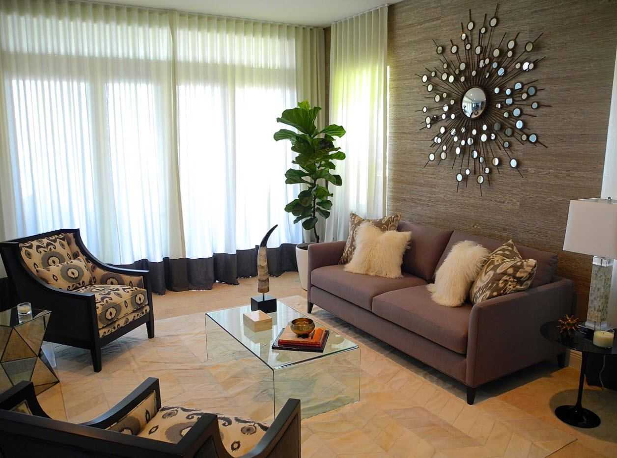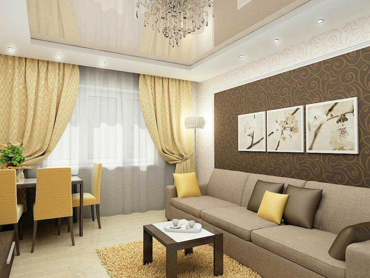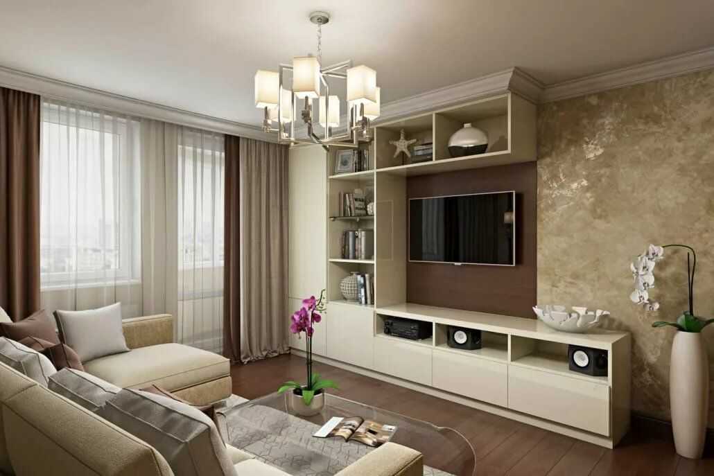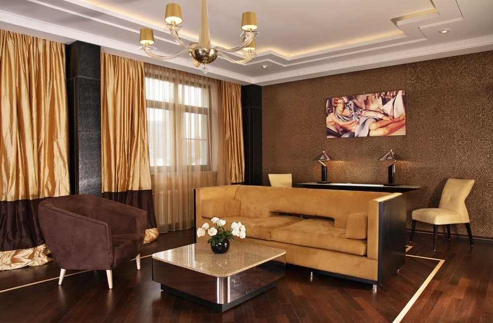 Для нивелирования чрезмерной строгости целесообразно комнату оживить зеленью, колоритными горчичными, малиновыми, сиреневыми аксессуарами. Стабильность и рациональность интерьера символизирует бежево коричневая гостиная. Фото с наглядными примерами разнообразных сочетаний этих тонов позволят подобрать оптимальный вариант для создания идиллии в зале.