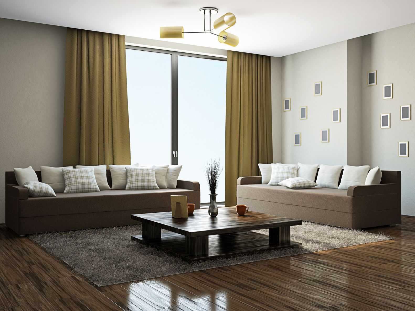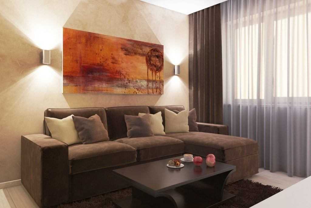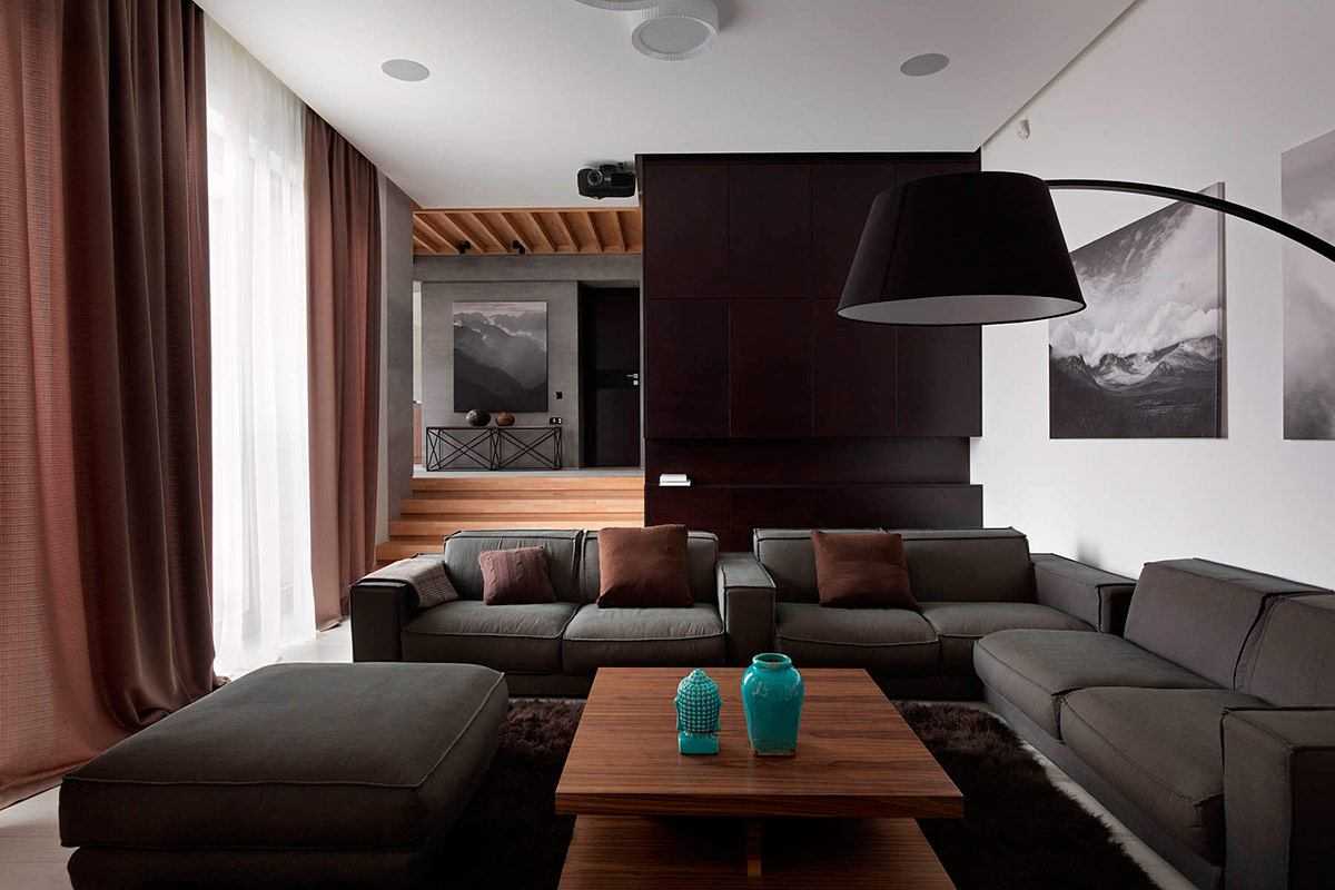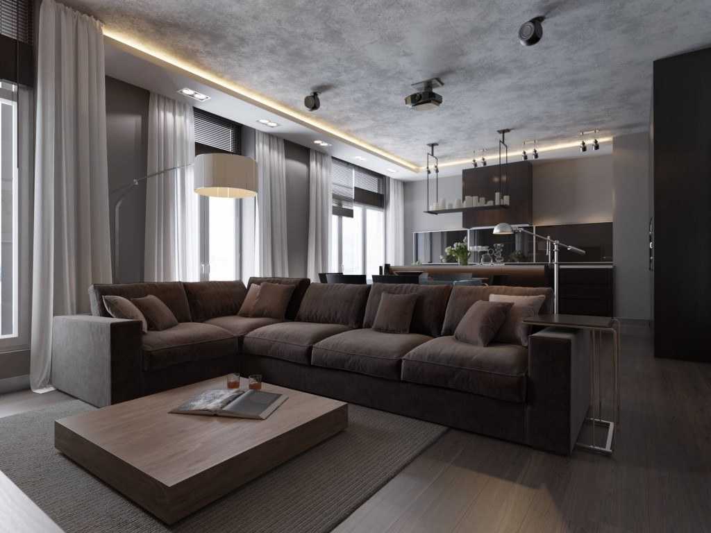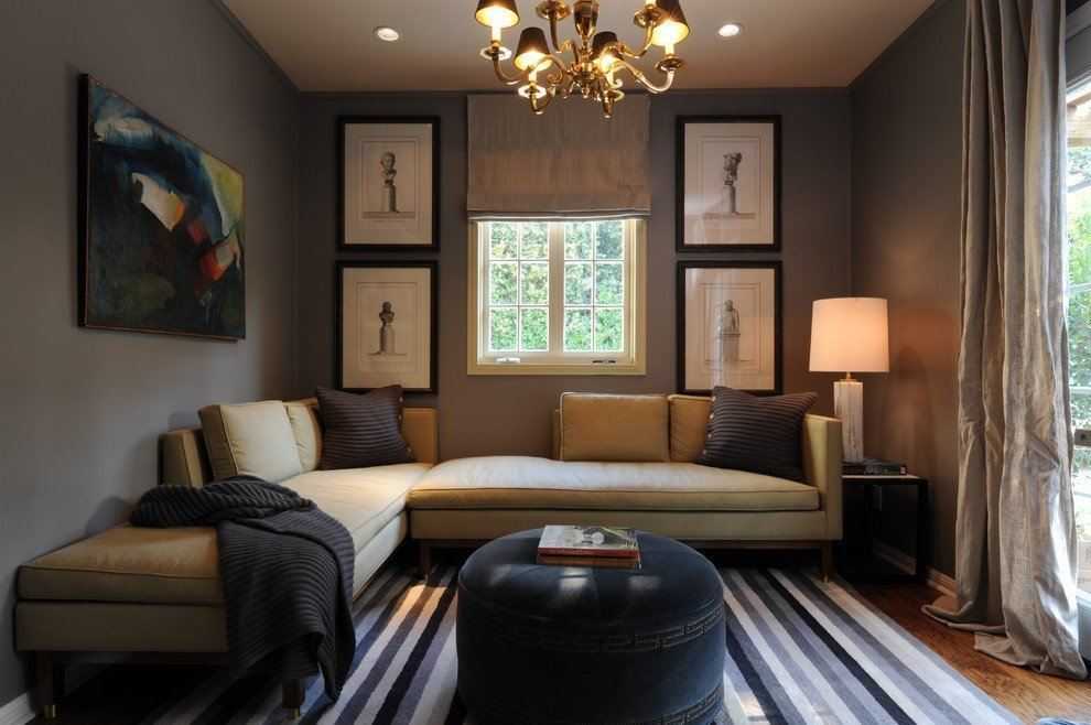 Так, минимальное количество темных тонов, использованных в отделке помещения, позволяет установить темную мягкую мебель.