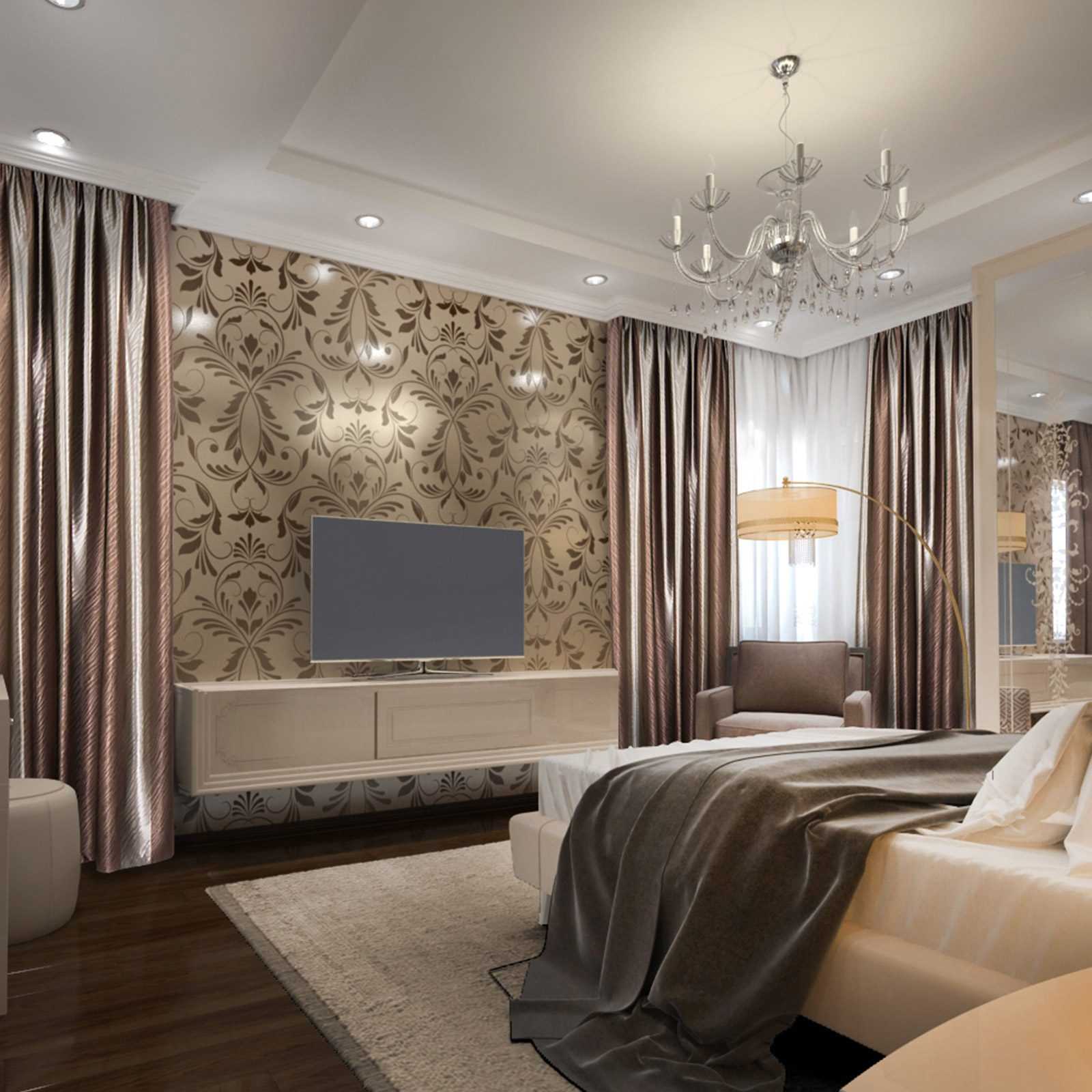 Выбирая основные покрытия с узором, стоит найти однотонную или фактурную полосу для размещения фотографий на стенах. В том же тоне подбирают портьеры.