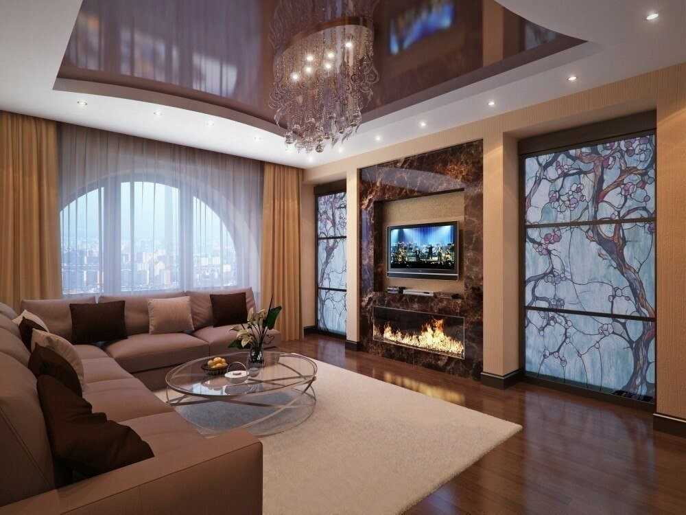 Благородный цвет, рожденный природой, создает запоминающийся образ гостиной в коричневых тонах. Фото картин интерьера с виртуозным использованием его градаций производят разное впечатление: восхищают неподдельной роскошью мебельных изделий из тика и венге, приковывают взгляд к необъятным диванам с лоснящейся на свету кожаной обивкой, восторгают самобытностью стен из сруба.