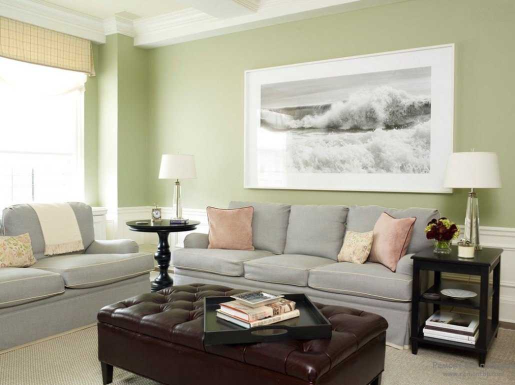 Гостиная с зелёными стенамиИсточник pro100stroy.com