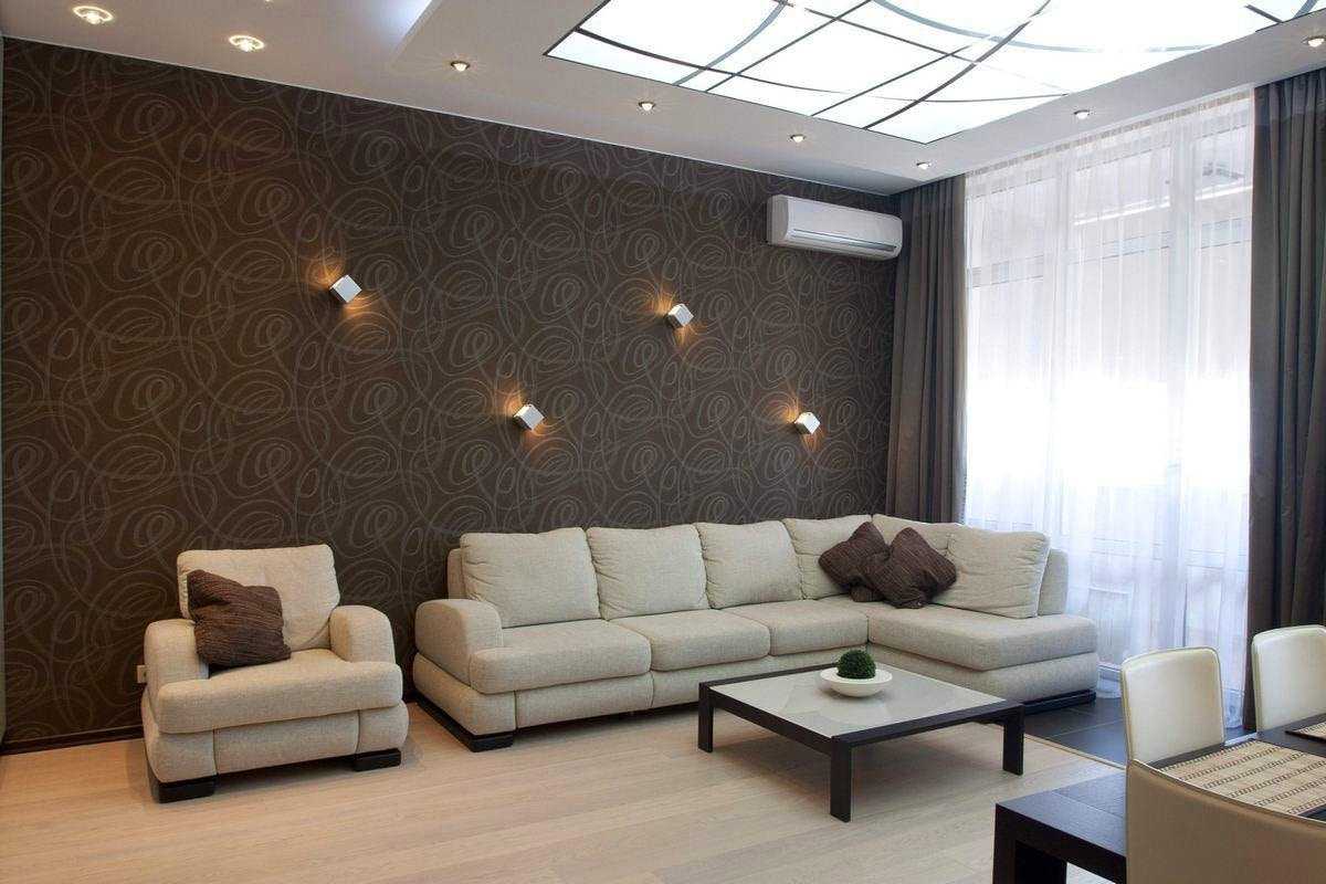 Что касается видов отделки стен, то наиболее распространёнными способами для обустройства гостиной считаются покраска, использование обоев или декоративная штукатурка. Покраску можно назвать простым и бюджетным вариантом.