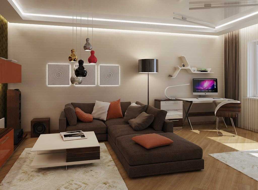 Даже в небольшой комнате обстановка может быть стильной. Здесь хочется посоветовать делать выбор из коллекций модульных гарнитуров. Производители мебели предоставляют возможность собрать элементы для собственной композиции. В ассортименте присутствуют предметы разных размеров. Нередко консультант салона может сделать вам 3D-проект вашего будущего интерьера.
