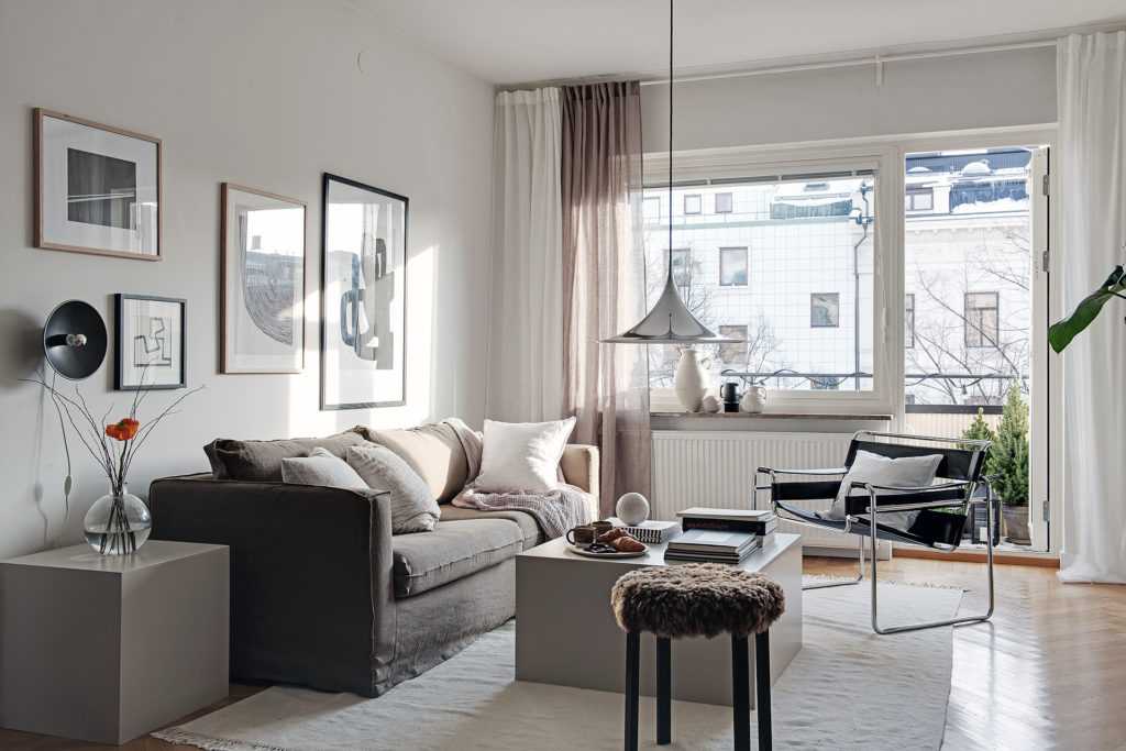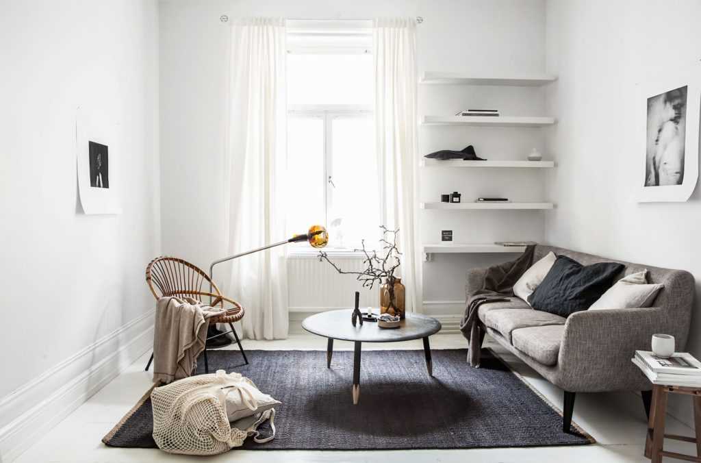 Особенно это важно для небольших квартир, поскольку такой дизайн интерьера будет способствовать отсутствию ощущения давления. Благодаря простым формам, нейтральным цветам и открытым горизонтам, комната вызывает чувства умиротворенности и спокойствия