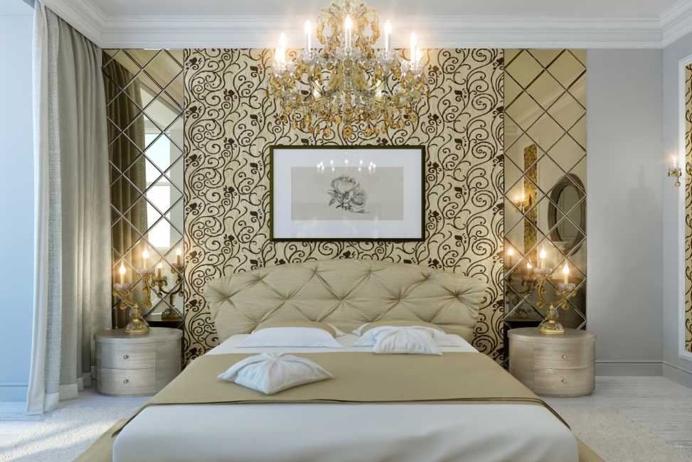 Шикарная люстра найдёт своё применение и в спальне. Это один из традиционных вариантов размещения потолочных хрустальных светильников.