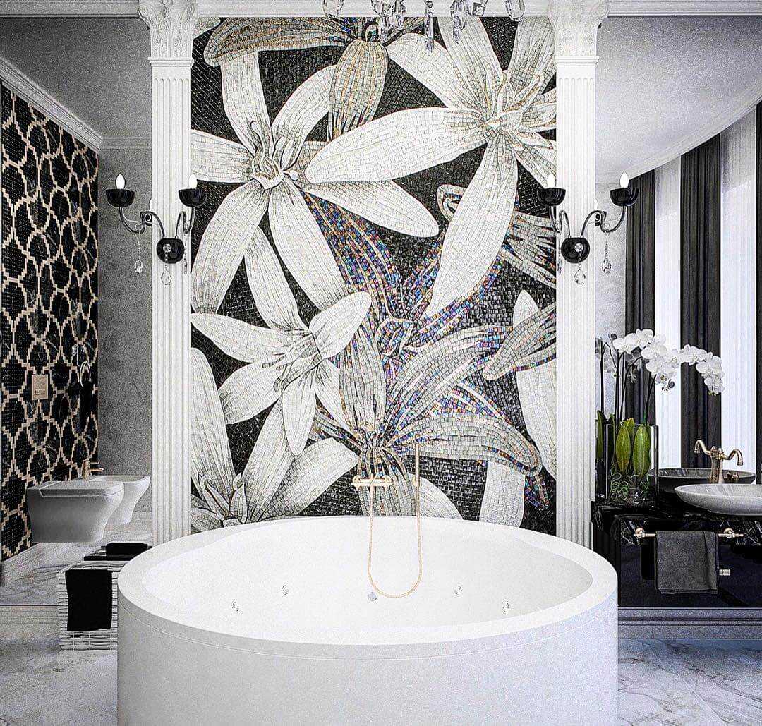 Благородная мозаика в настоящее время не только очень популярна, но и придает каждой ванной комнате гламурный, высококачественный вид