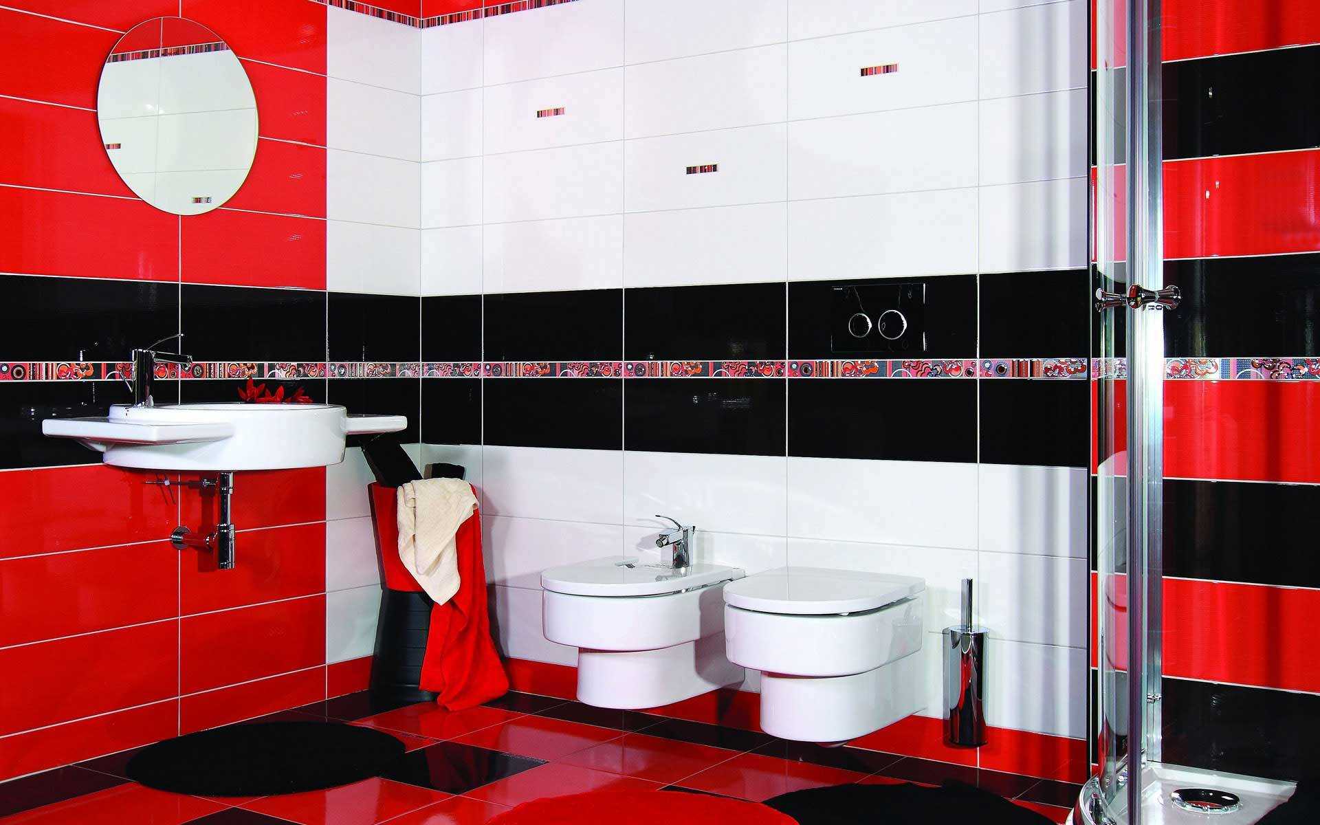 Графическая ванная комната в черном и красном