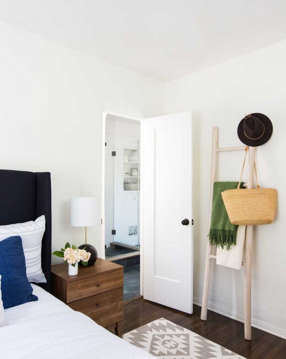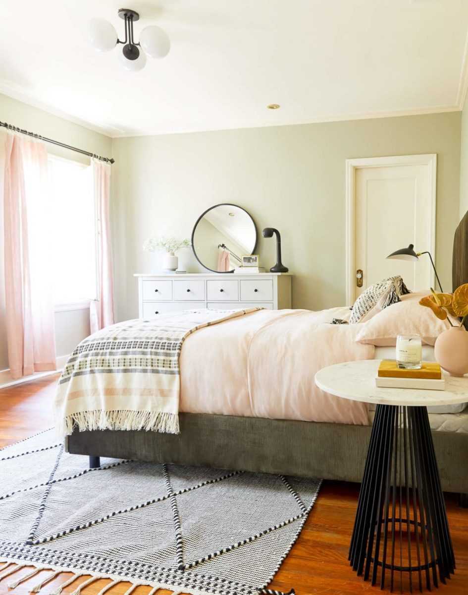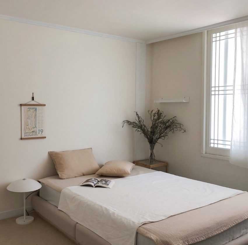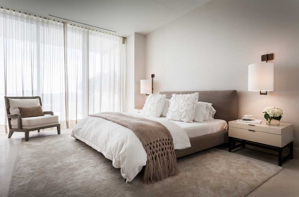 В минималистичном интерьере царят простые и правильные геометрические формы: прямоугольник, квадрат, круг или полукруг. Это касается изголовья кровати, светильников, прикроватного коврика — всего, что есть в спальне.