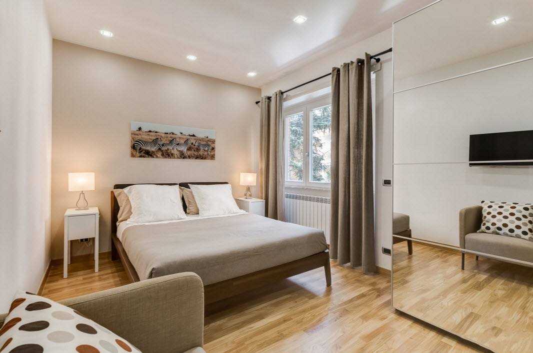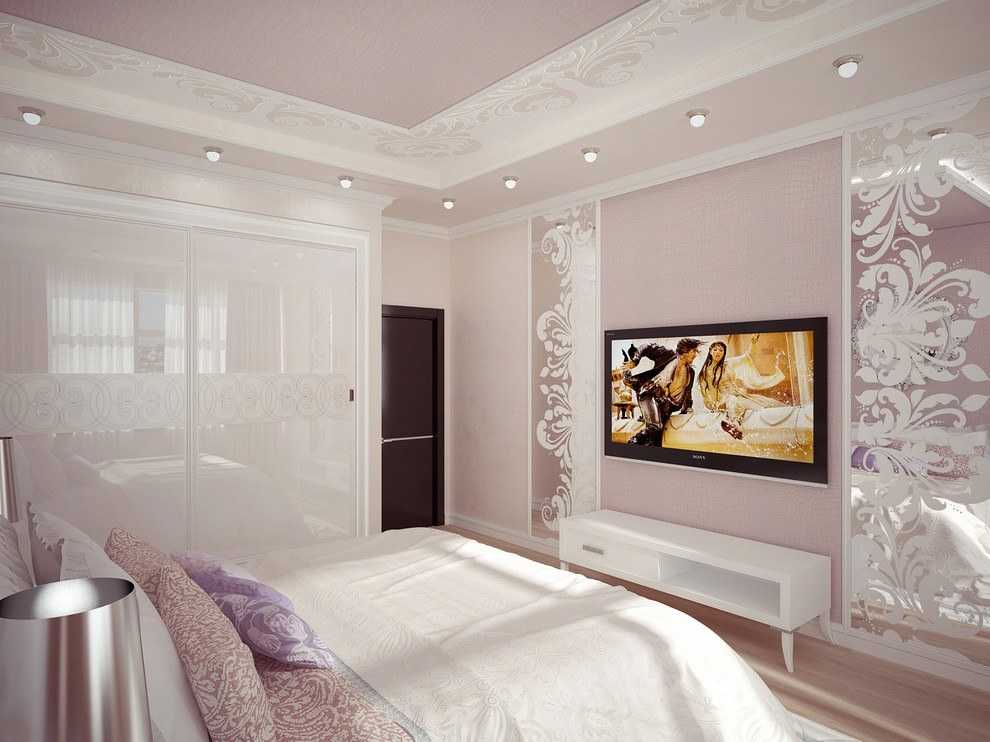 - Возможность создания визуальных эффектов объёма за счёт зрительного расширения пространства. Помещение кажется более просторным, по меньшей мере, в два раза больше того, что есть в действительности. При разработке дизайн-проектов спален скромных размеров столь полезное свойство приобретает особую ценность.