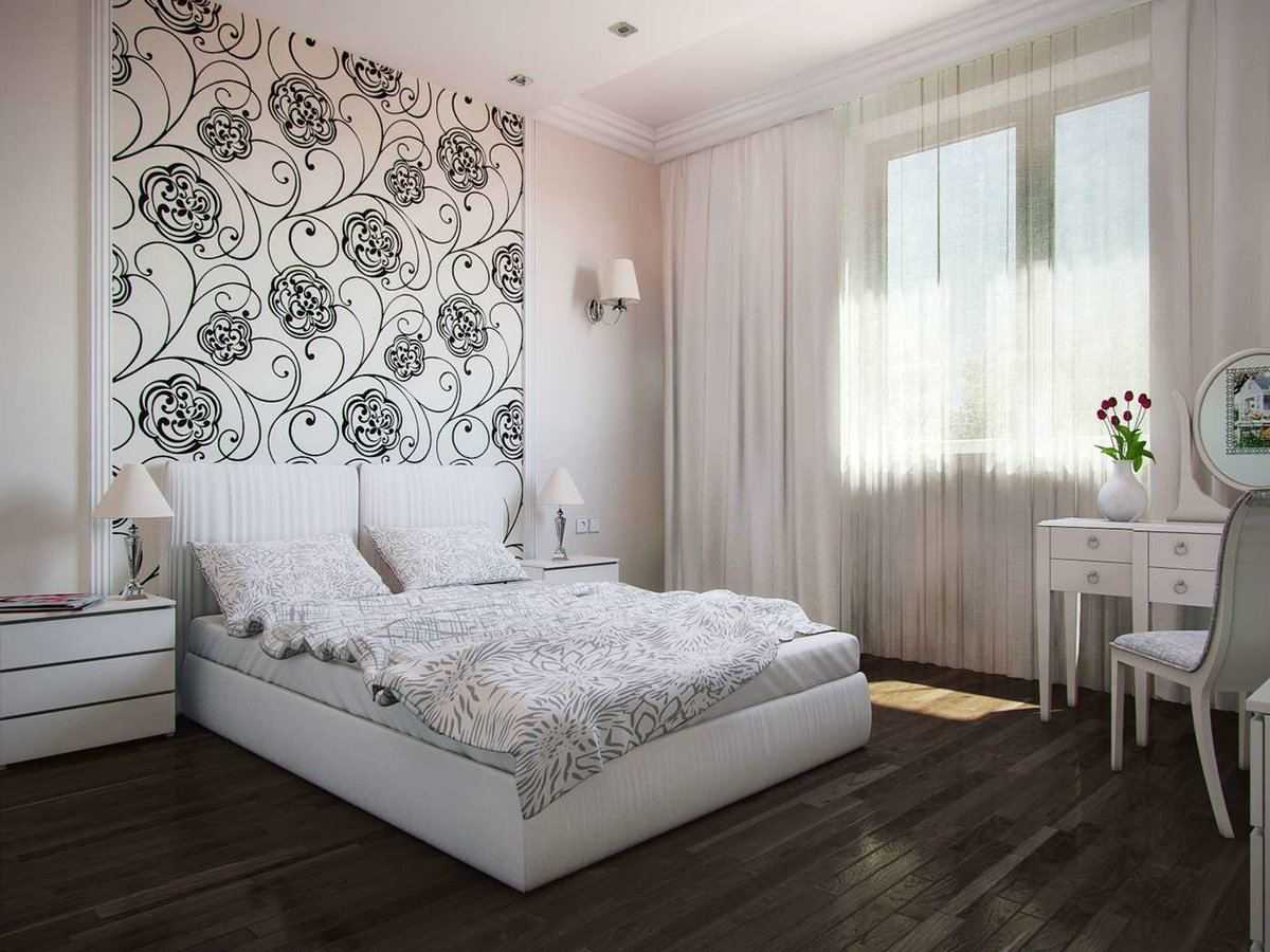 Используя белые обои, можно значительно увеличить пространственный объем спальни. Смело комбинируй разнообразные фактуры обоев и оттенки белого, наиболее популярные из которых – жемчужный, молочный и перламутровый.