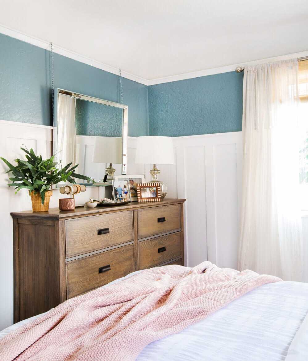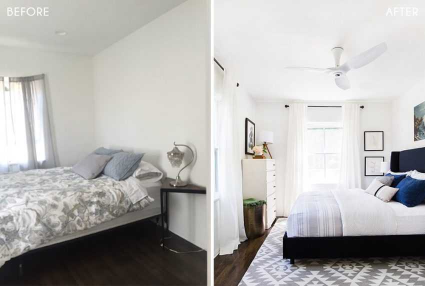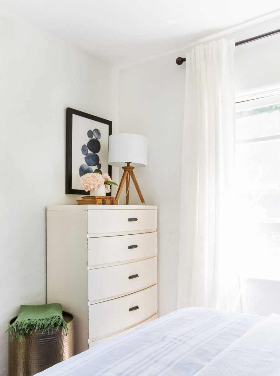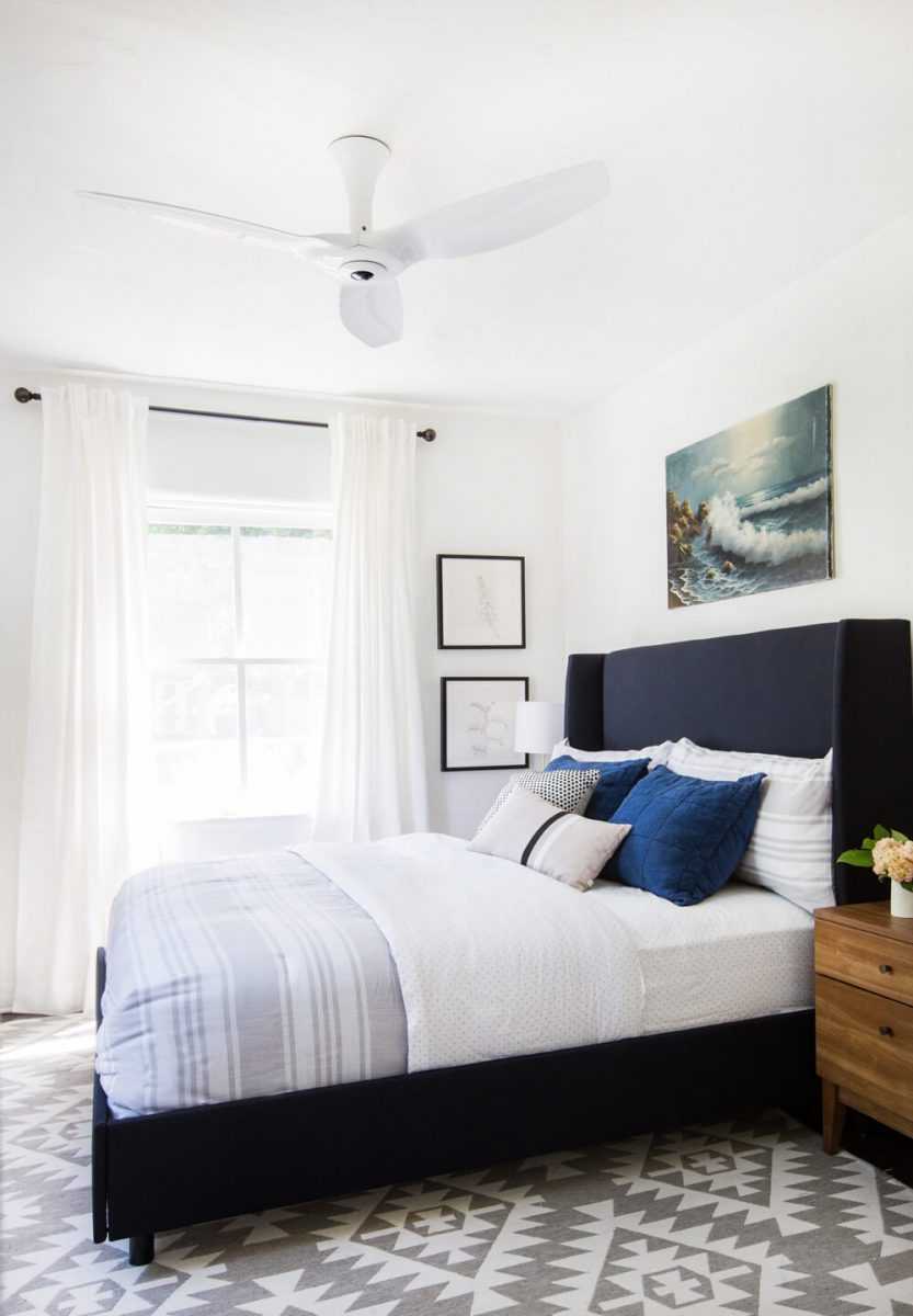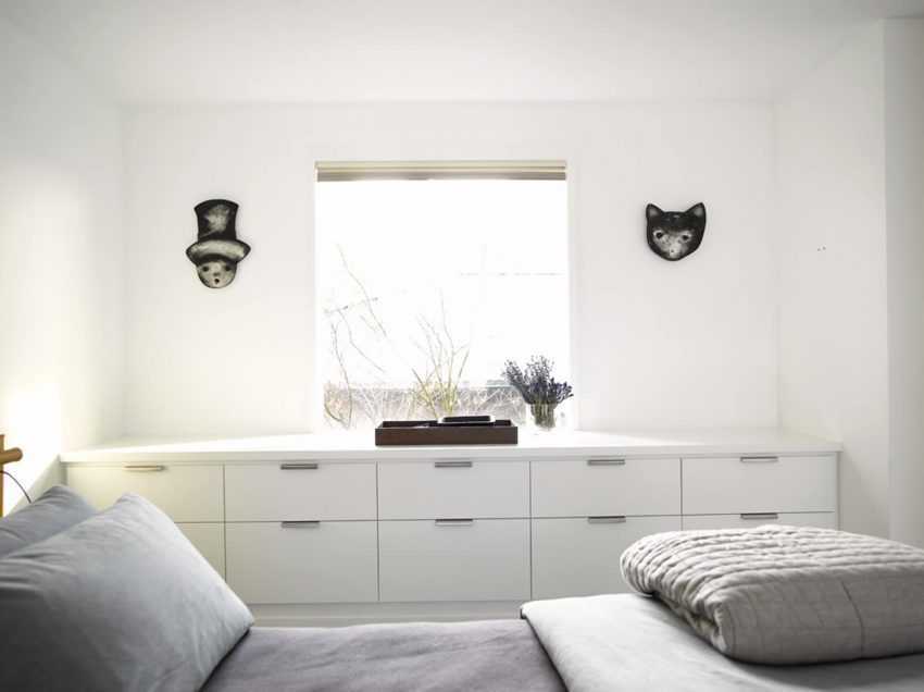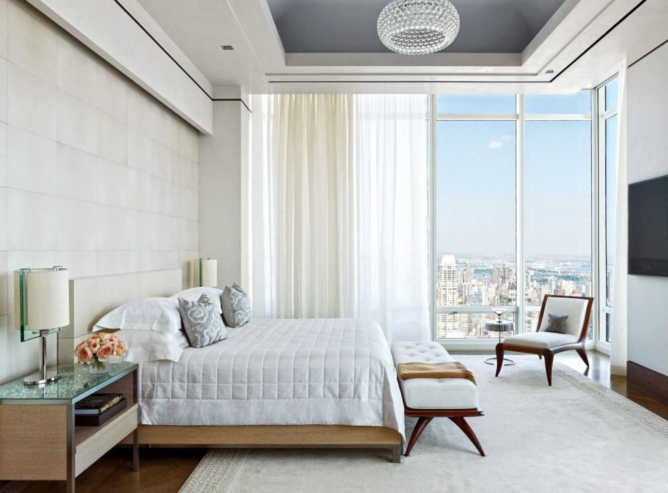 Из-за этого дизайнеры зачастую даже отказываются от занавесок на окнах. Но мы считаем, что простые белые шторы или жалюзи в спальне будут весьма уместны.