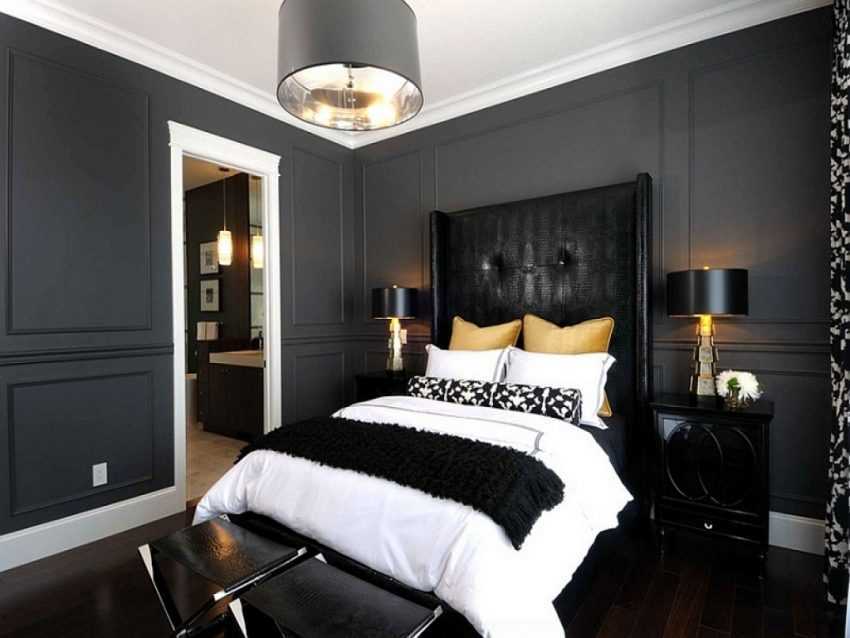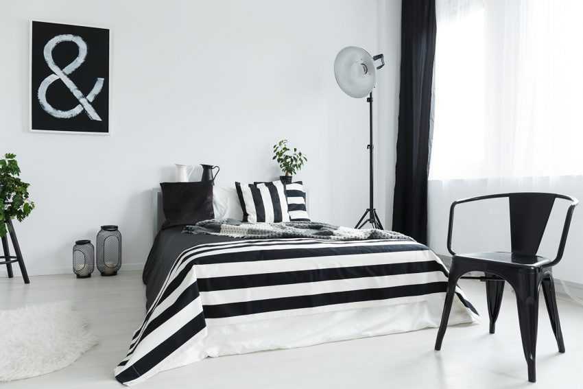 Неординарные люди могут смело делать спальню в чёрно-белых тонах. Но играть с этими цветами нужно аккуратно, так как оба довольно-таки агрессивны. Изобилие тёмного омрачит помещение, сделает его визуально меньше.