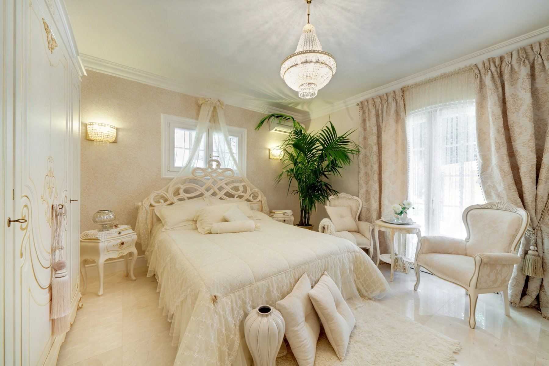 Это такая себе спальня – имитация комнаты деревенского французского домика. Для её оформления используйте кровать с металлическим изголовьем. Текстиль должен обязательно содержать цветочный орнамент. Либо фигурки ангелочков, животных, людей. Предметы мебели берутся простые, с резными фасадами. И обязательно наличие небольшой вазочки с букетом полевых цветов на туалетном столике. На кровать и кресло небрежно бросьте лёгкие цветастые пледы или подушки. Ткани в спальне стиле прованс должны быть только натуральными.