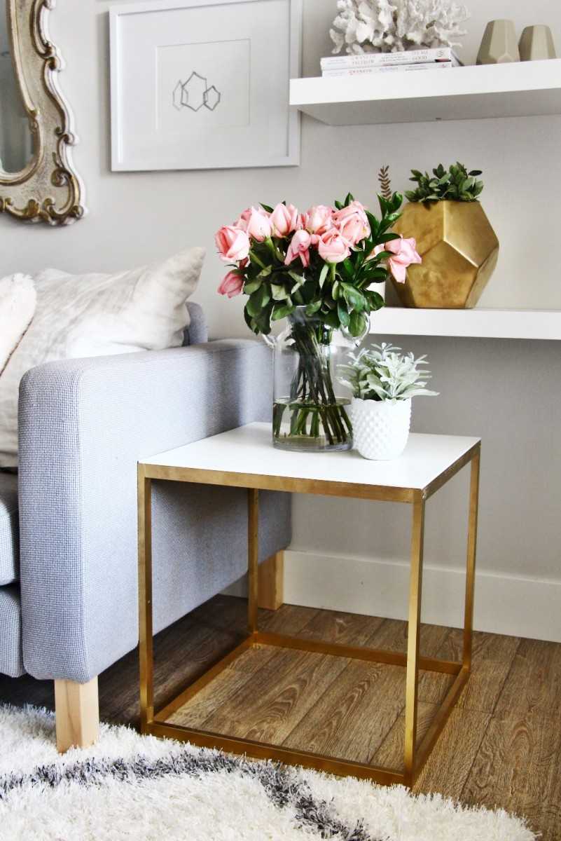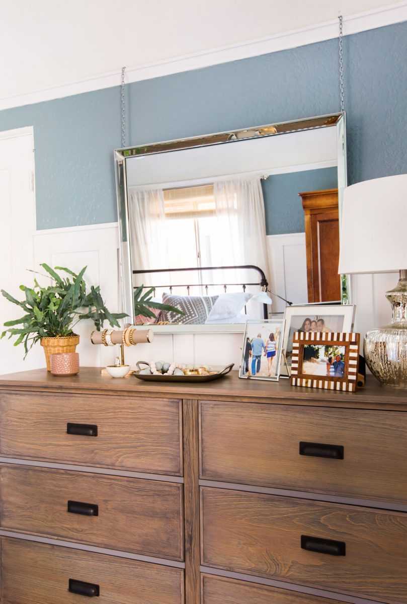 - Зеркальный шкаф-купе или тумбочка с позолоченной фурнитурой станет изюминкой в декоре.