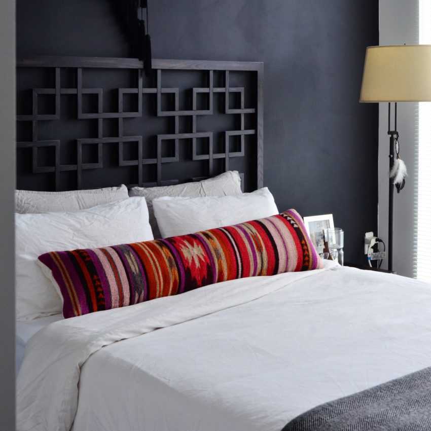 Постельное белье лучше подбирать в светлых оттенках. Это же правила касается и покрывала, и декоративных подушек. Такое решение поможет проще выделить кровать, как основной элемент спального помещения, придать ему воздушность и выразительность. При этом не обязательно идеально расправлять всю ткань и изящно раскладывать складки. Небольшой беспорядок придаст темной спальне дополнительное очарование.
