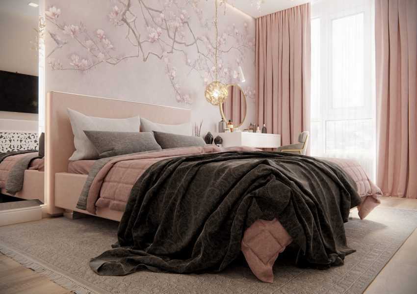- если спальня планируется общей, то с мужской стороны последует недовольство, а возможно и категорический отказ от такого оформления. Чтобы убедить его в том, что розовый можно адаптировать под унисекс — покажите фото розовой спальни в максимально приглушенных тонах с добавлением серого, оливкового, синего и зеленого цветов;