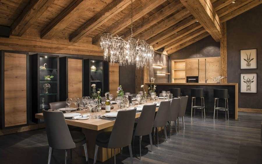 - В обеденной зоне поставьте большой прямоугольный или круглый стол из массива дерева.