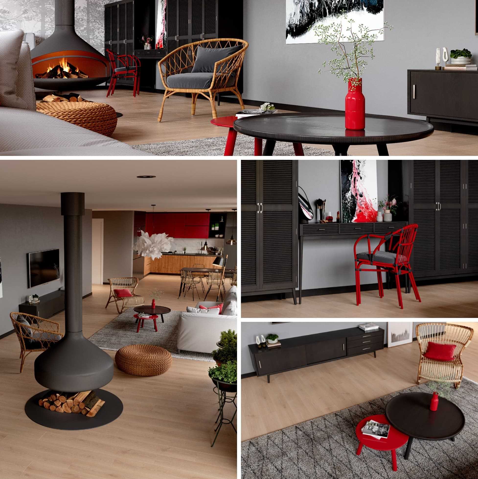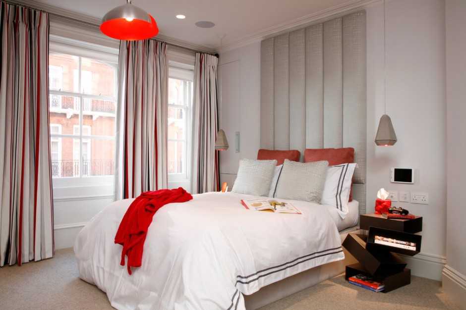 Сегодня такое сочетание цветов – классика, признанная всеми дизайнерами, она никогда не выйдет из моды. Красный, чёрный и белый на фоне серого – это идеальное сочетание, в зависимости от процентного соотношения того или цвета, эффект будет совершенно разный. Однако, красного не должно быть много, оттенок же не обязательно должен быть кричаще-ярким.