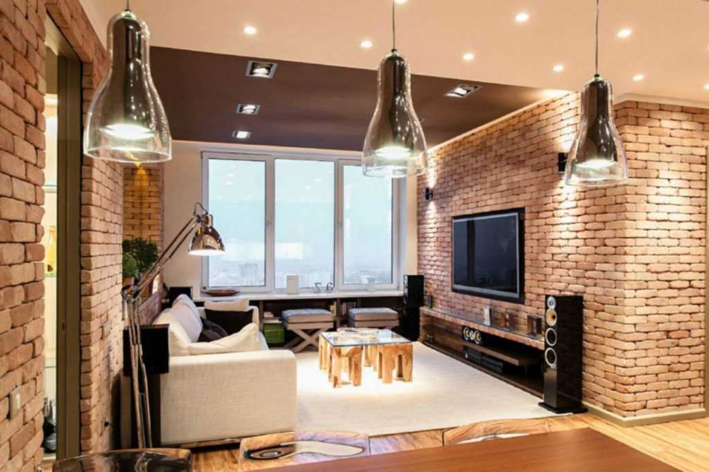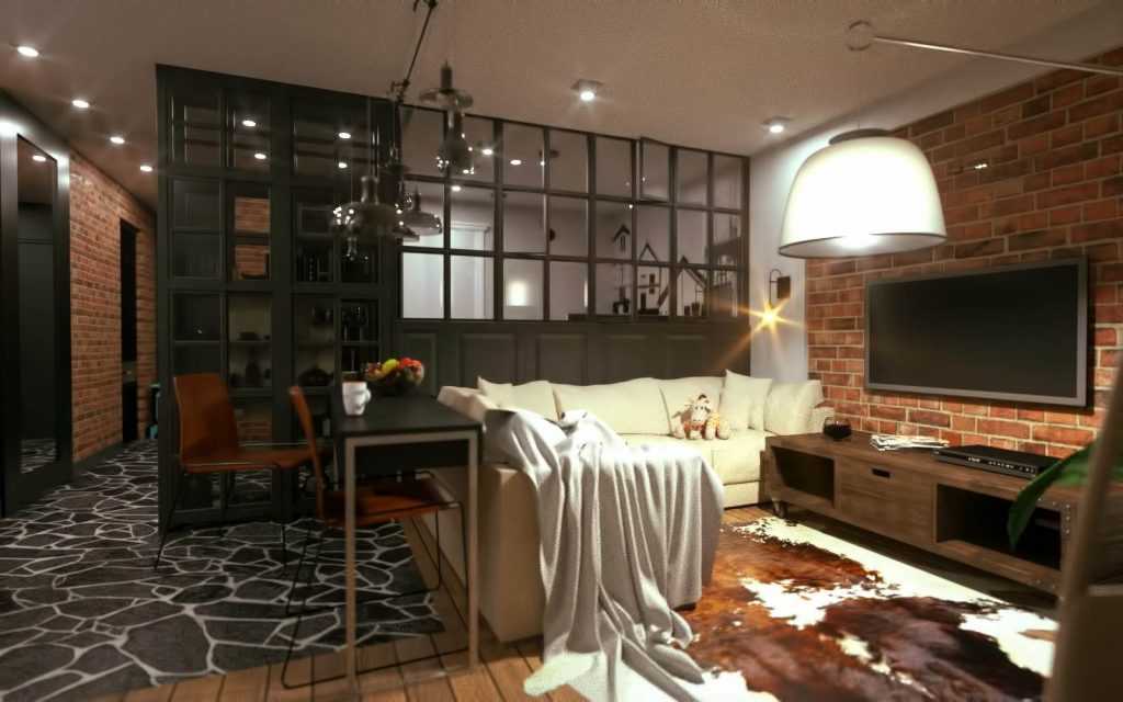 Одним из достоинств, которыми обладает оформление гостиной в стиле лофт, является его доступная стоимость. Проведение ремонта возможно при минимальном бюджете. Минимализм во всем – именно по этому принципу и сформировался лофт.