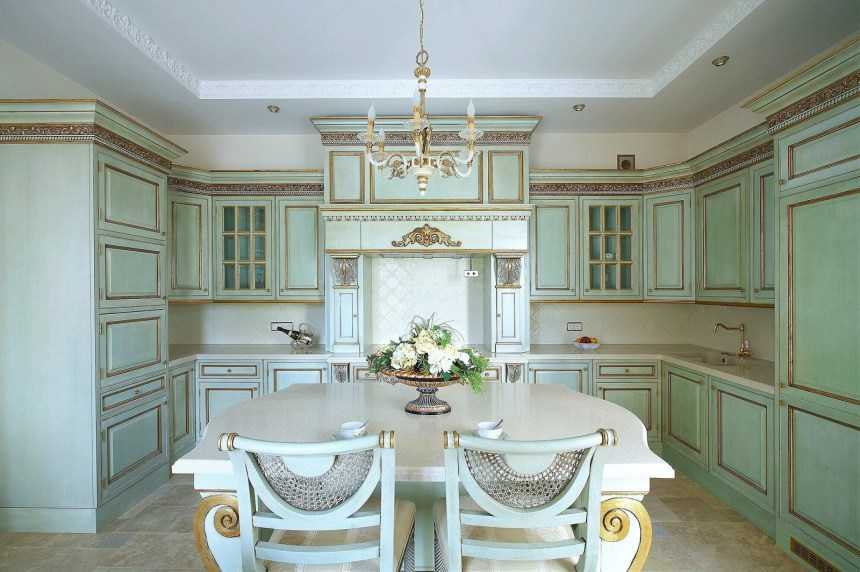 Подойдет для придания жилью ноток благородности, изысканности. Декоративные элементы отлично дополняют собой изделие. Для кухни в классическом стиле они не заменимы, но потребуют особого ухода для поддержания чистоты.