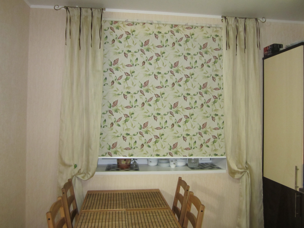 Шьют римские шторы из хлопка, льна, бамбука, джута. Подниматься могут с помощью веревки, цепочки или электронного механизма. На кухне шторы создадут затененность, спасут от излишних солнечных лучей.