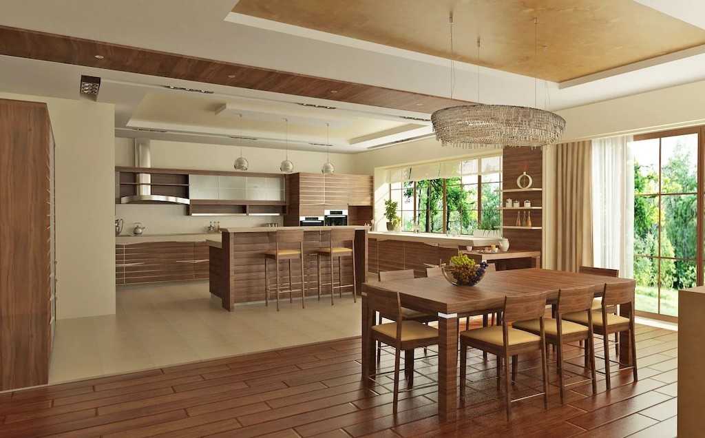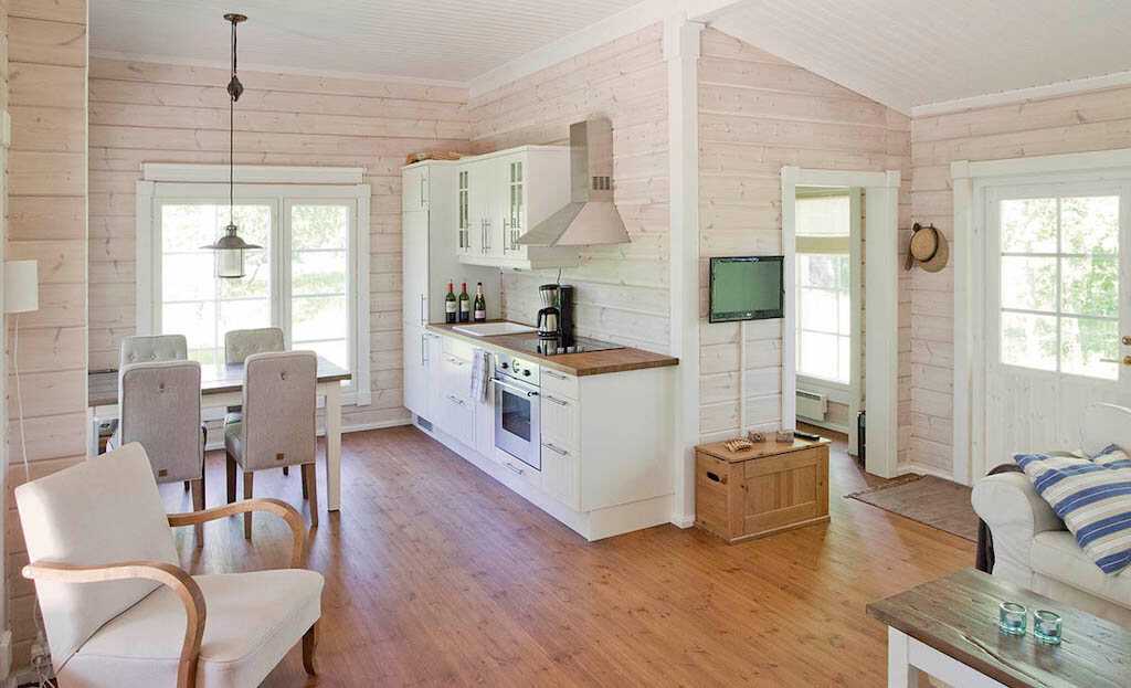 Но не стоит забывать и про некоторые особенности помещения, например, повышенную влажность на кухне — необработанную древесину такой микроклимат просто испортит.