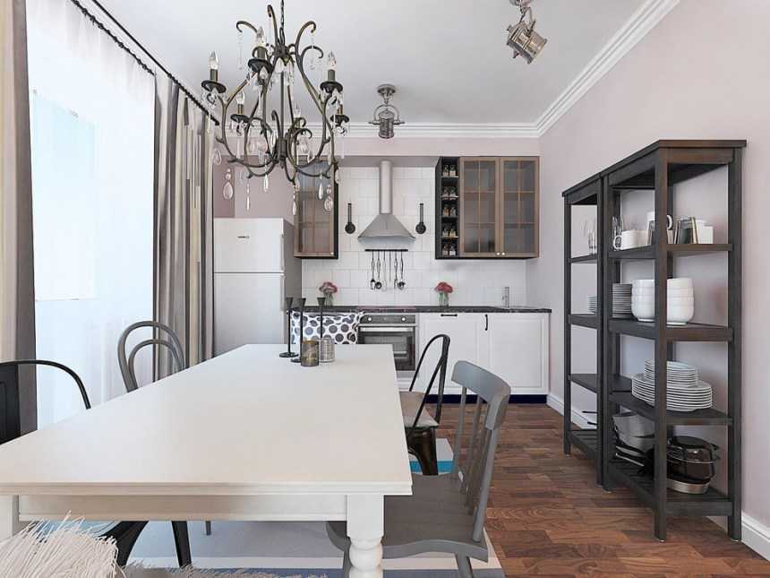 Переходным звеном между кухней и гостиной может выступать обеденная зона.