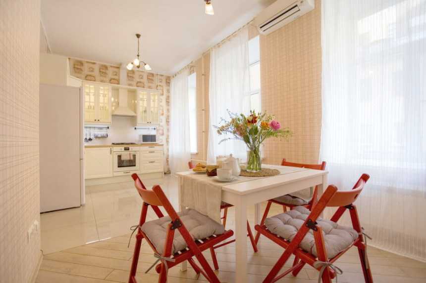 Если семья состоит не более, чем из двух человек, то для обеденной зоны можно выделить место на кухне. Например, переделанный в столешницу подоконник. К нему необходимо купить барные стулья, а лучше – барные табуреты, которые полностью задвигаются под столешницу, освобождая больше места.