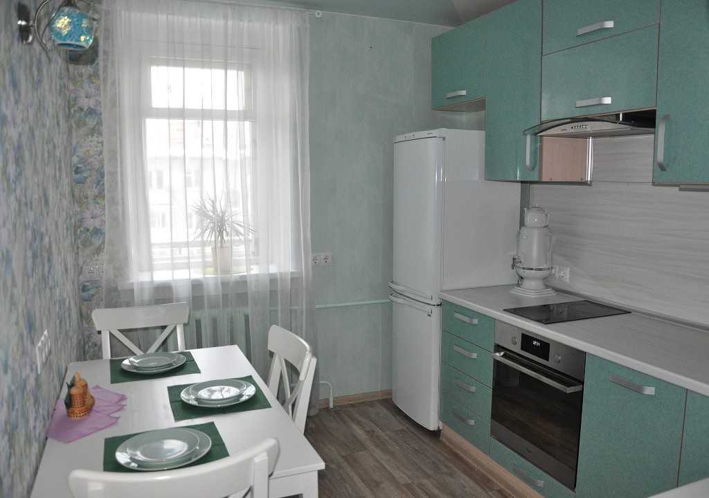 Один из вариантов планировки — перенос мойки под окно. Тогда для холодильника освобождается угол у входа. Но перенос мокрой зоны по закону также требует согласования. Такое решение потребует дополнительных хлопот с удлинением коммуникаций.
