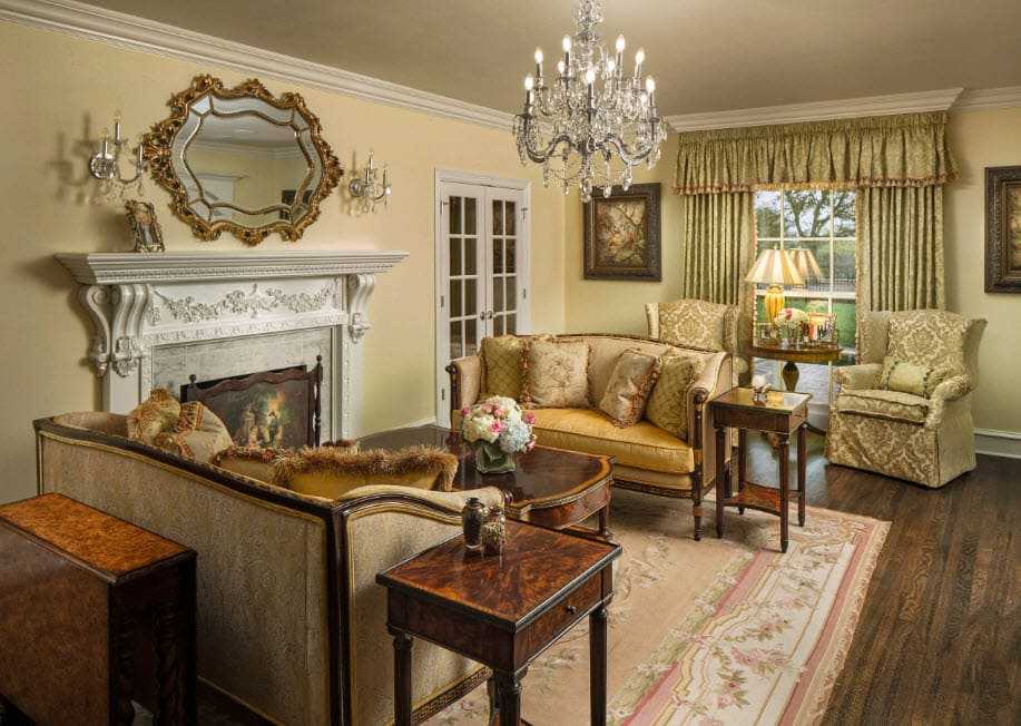 Фото 7. Камин в интерьере гостиной в английском стиле