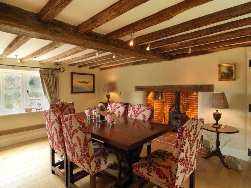 Английский стиль диктует совершенно определённые правила оформления несущих и опорных конструкций помещения, такие как: