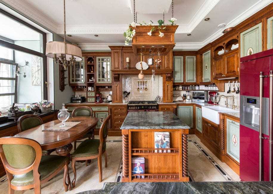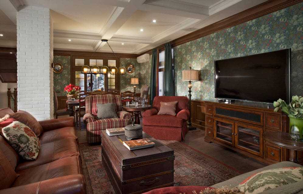 Такой стиль станет отличным решением для загородного здания. Несмотря на свой строгий и классический вид, он может стать теплым и уютным пристанищем для всей семьи.