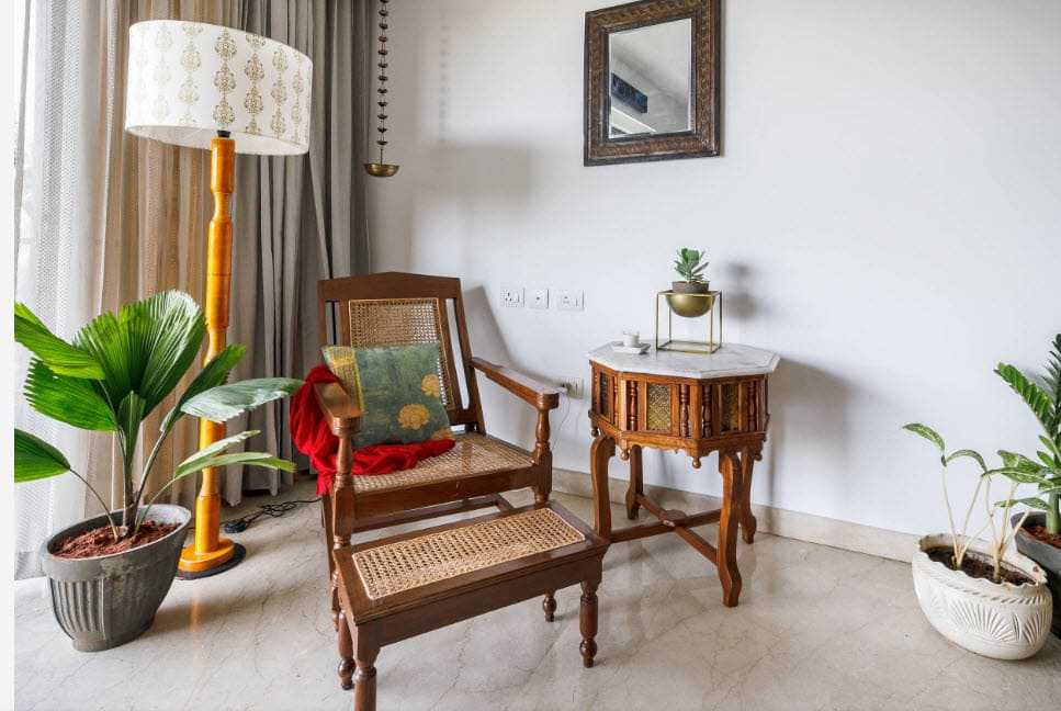 - Накройте кофейные столики тканью до пола, а на середину поставьте букет красивых цветов либо оригинальное украшение. Старинная мебель придаст интерьеру аутентичности.