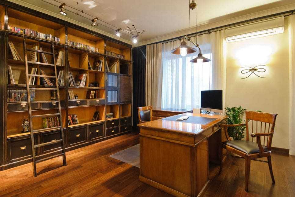 Фото 11. Книжные шкафы в интерьере кабинета в английском стиле