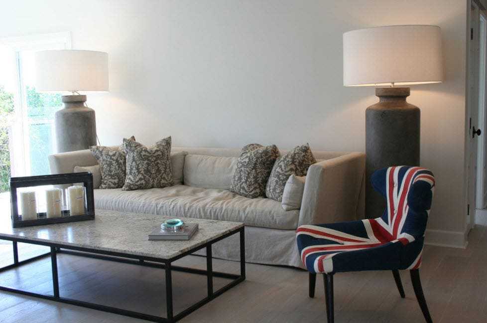 Пример совмещения классики и современности в английской гостиной, с её обязательными элементами интерьера