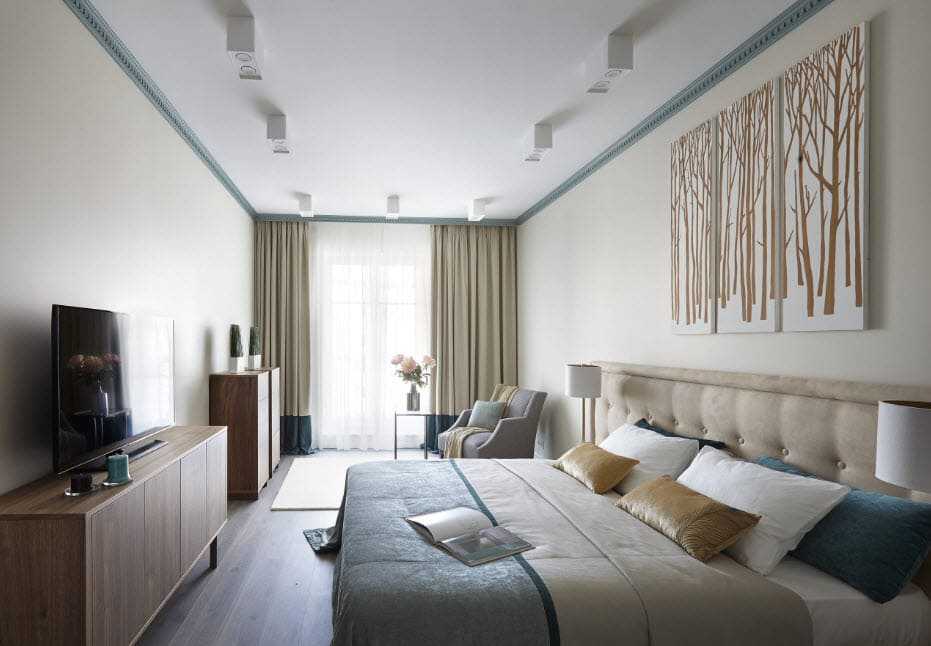 Яркость цветов интерьера сдержана и являет собой пример сочетания благородства и уюта в атмосфере комнаты