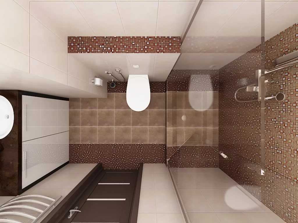 Больше всего места в совмещенном санузле занимает сантехническое оборудование. Поэтому начинать разработку дизайн-проекта следует именно с него.