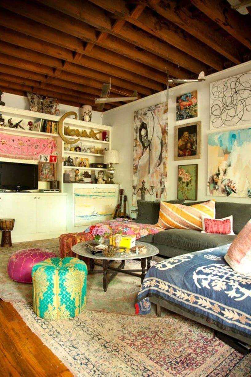 Гостиная в стиле бохо – это место, где полностью расслабляешься и забываешь все заботы и проблемы. Яркие картины, оригинальные панно, всевозможные произведения искусства, хенд мейд здесь только приветствуются. В гостиной в стиле бохо должна чувствоваться атмосфера праздника, юмора, свободы самовыражения, здесь нет места негативу и подавленному настроению.