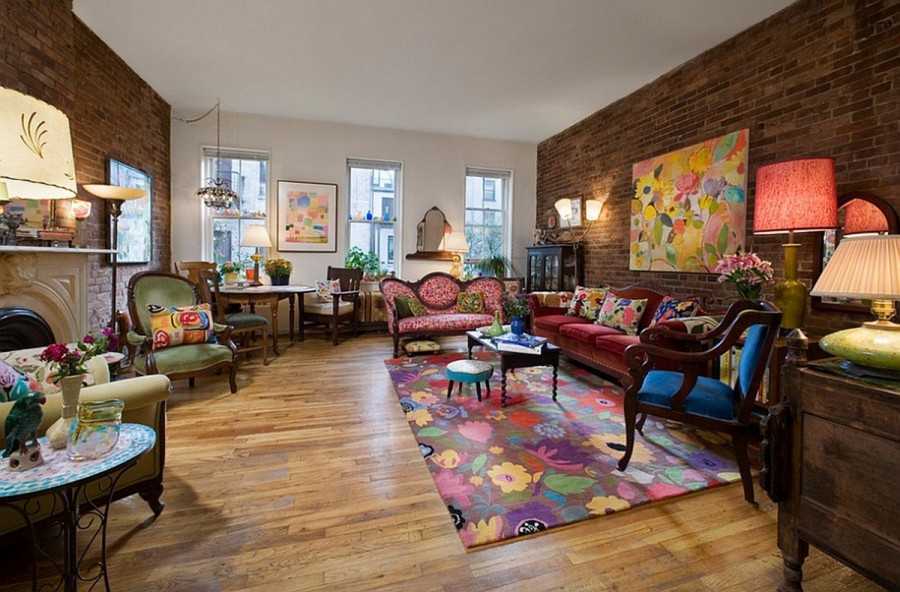 Найдётся место пластинкам со старым проигрывателем, граммофону и раритетным вещам, приобретённым на блошином рынке. То, что привезено из путешествий, сколлекционировано, смело выставляется на обозрение. Скопление этих предметов отражает внутренний мир владельца, его многообразие и непохожесть на других.