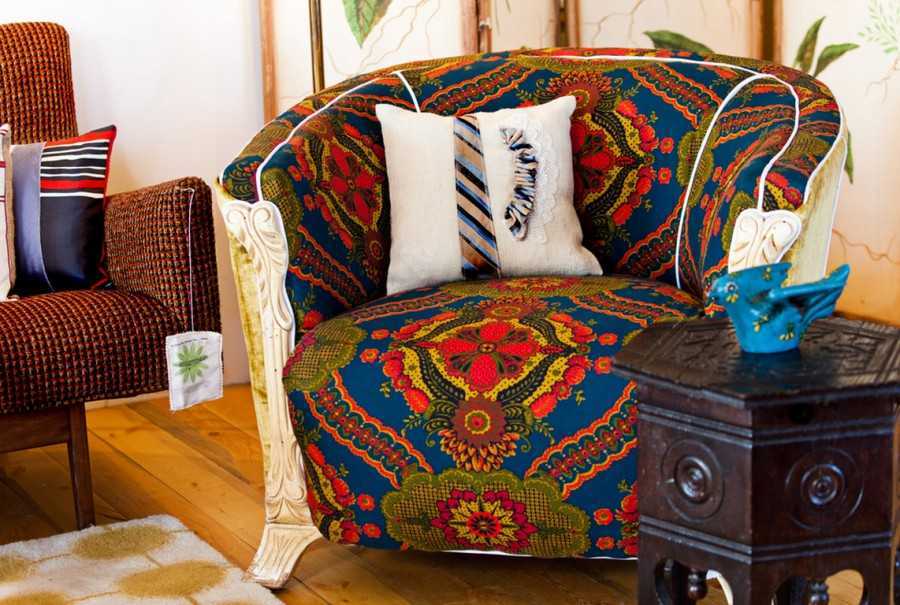 Этот стиль невозможно испортить обилием ткани. Она прячет простоту быта и украшает старую мебель. Хорошо, если текстиль не сочетается по цвету, составу и текстуре.