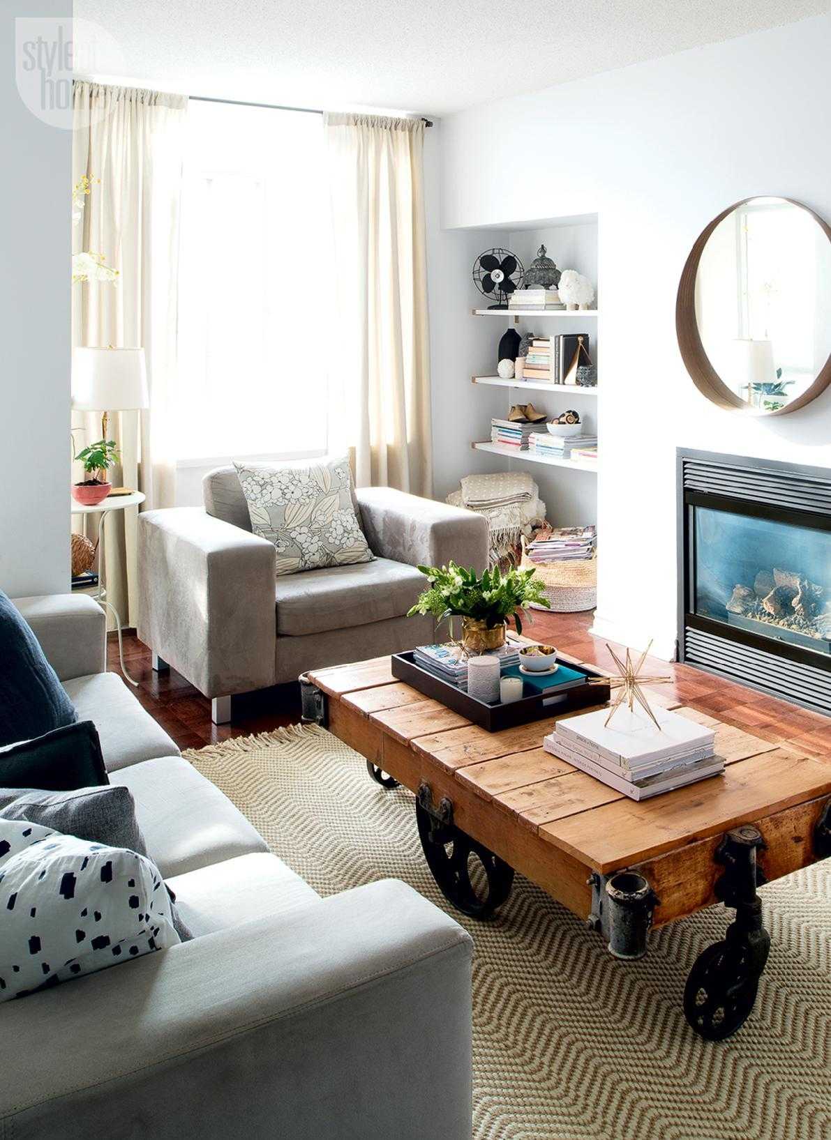 Небольшая гостиная в стиле бохо с деревянным столиком