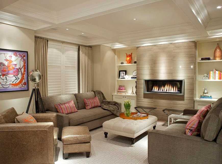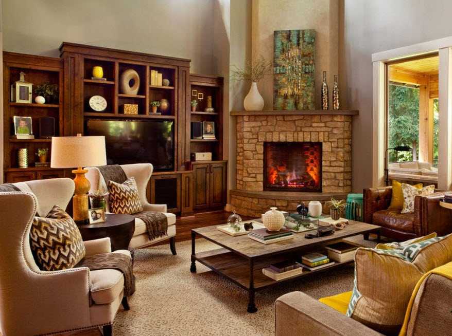 Наличие камина накладывает определенные требования по его местоположению и функциональности. Если планируется сооружение с открытым огнем, то нужно иметь в виду, что размеры комнаты должны быть достаточно большими. Существует несколько видов каминных конструкций.