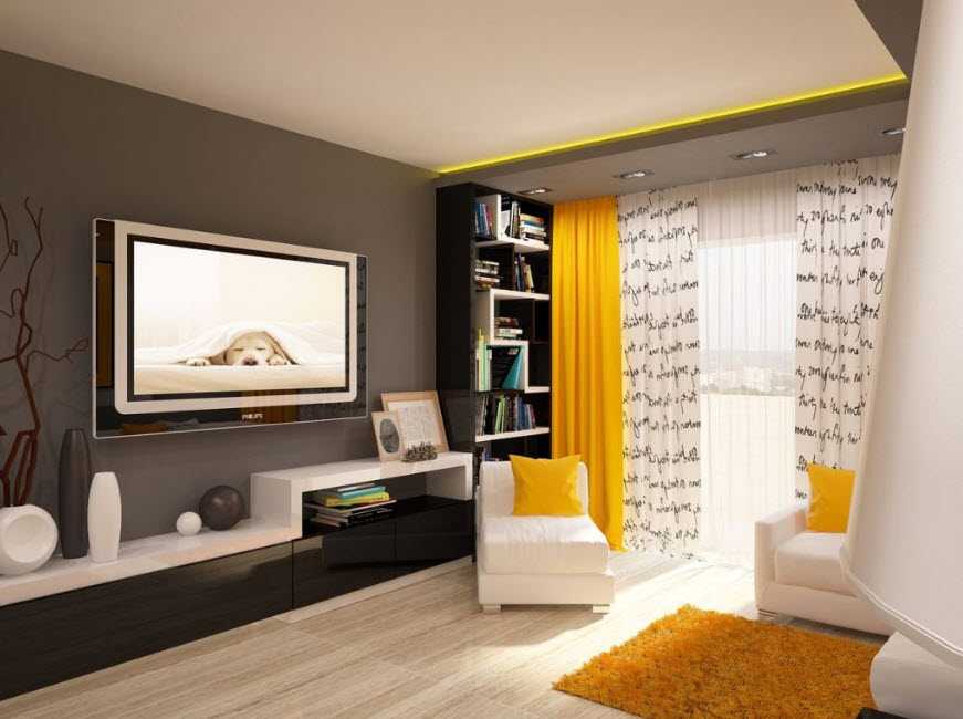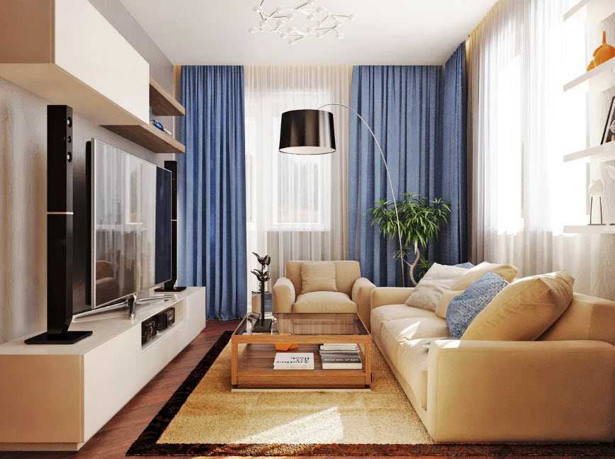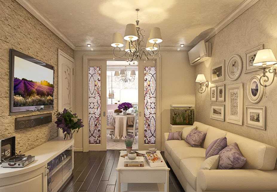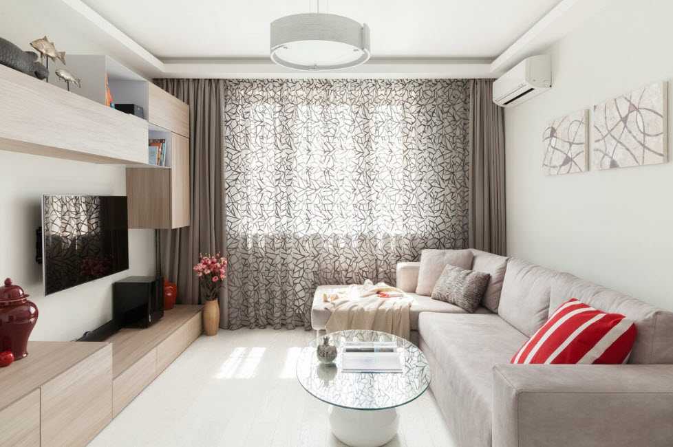- планировка комнат по типу «студия» значительно расширяет пространство, зоны разделяют правильным размещением мягкой мебели, или прозрачными перегородками;